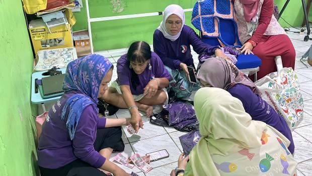 (Rozita, CoP Australia, helping organize the sale of CoP T-shirts in Australia)